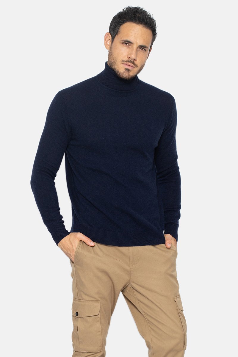Pull Bange 100% cachemire, 2 fils - Col montant - Bleu marine