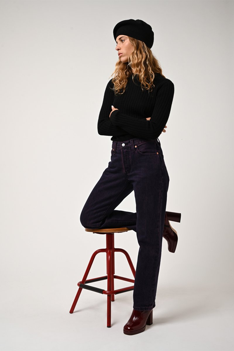 Pull Bella 100% cachemire, 2 fils - Col rond - Noir
