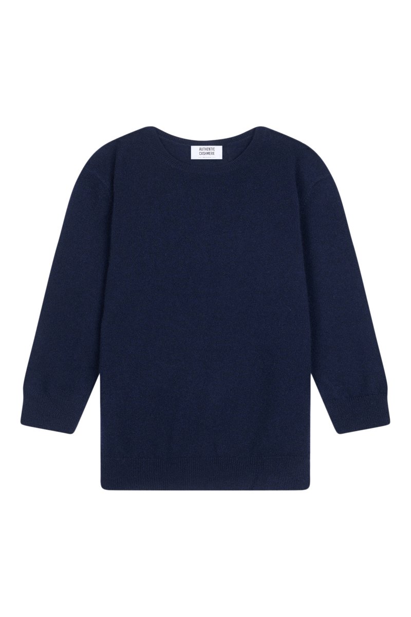 Pull Estaris 100% cachemire, 2 fils - Col rond - Bleu marine