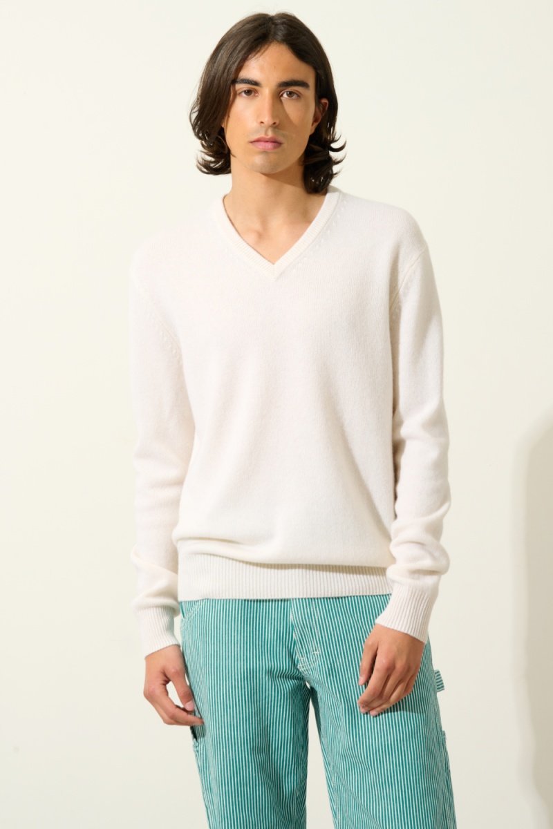 Pull Victor 100% cachemire, 4 fils - Col en V - Neige