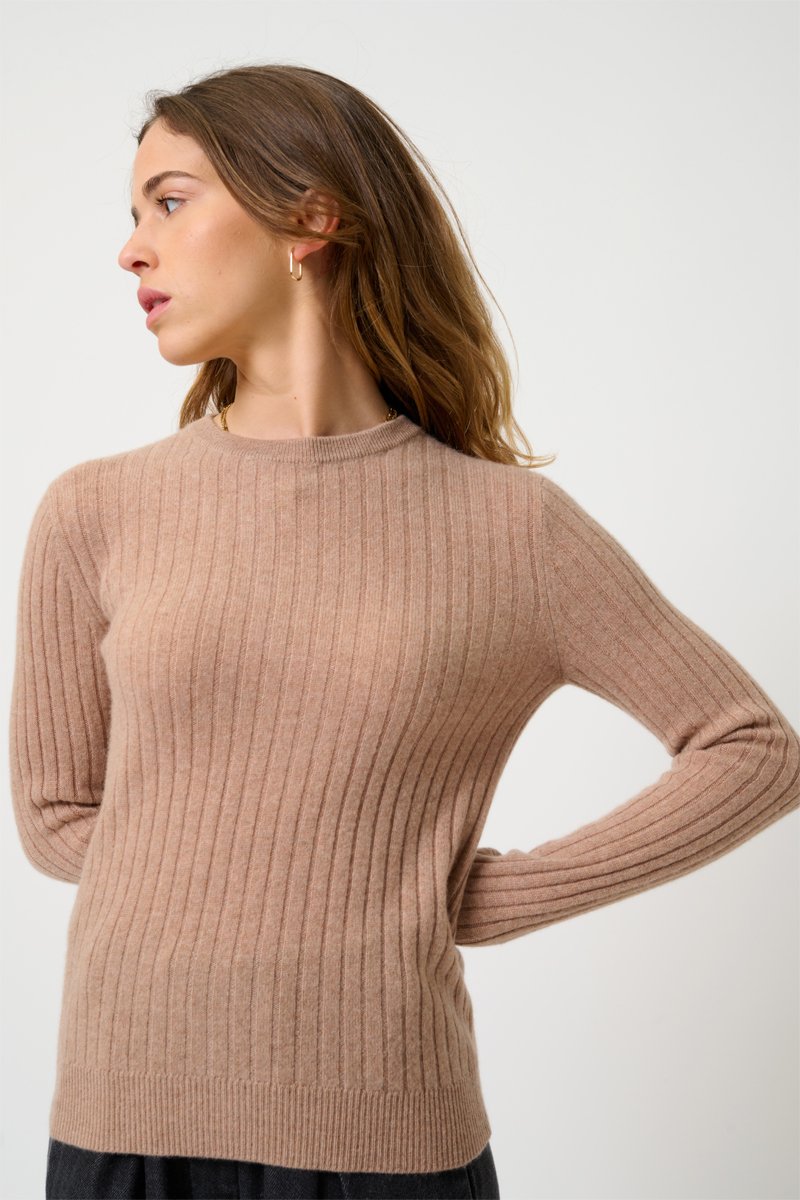Pull Bella 100% cachemire, 2 fils - Col rond - Beige