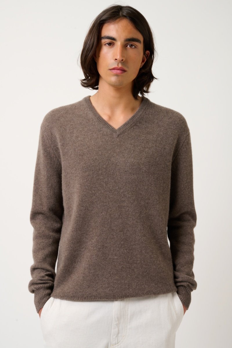 Pull Victor 100% cachemire, 4 fils - Col en V - Taupe chiné