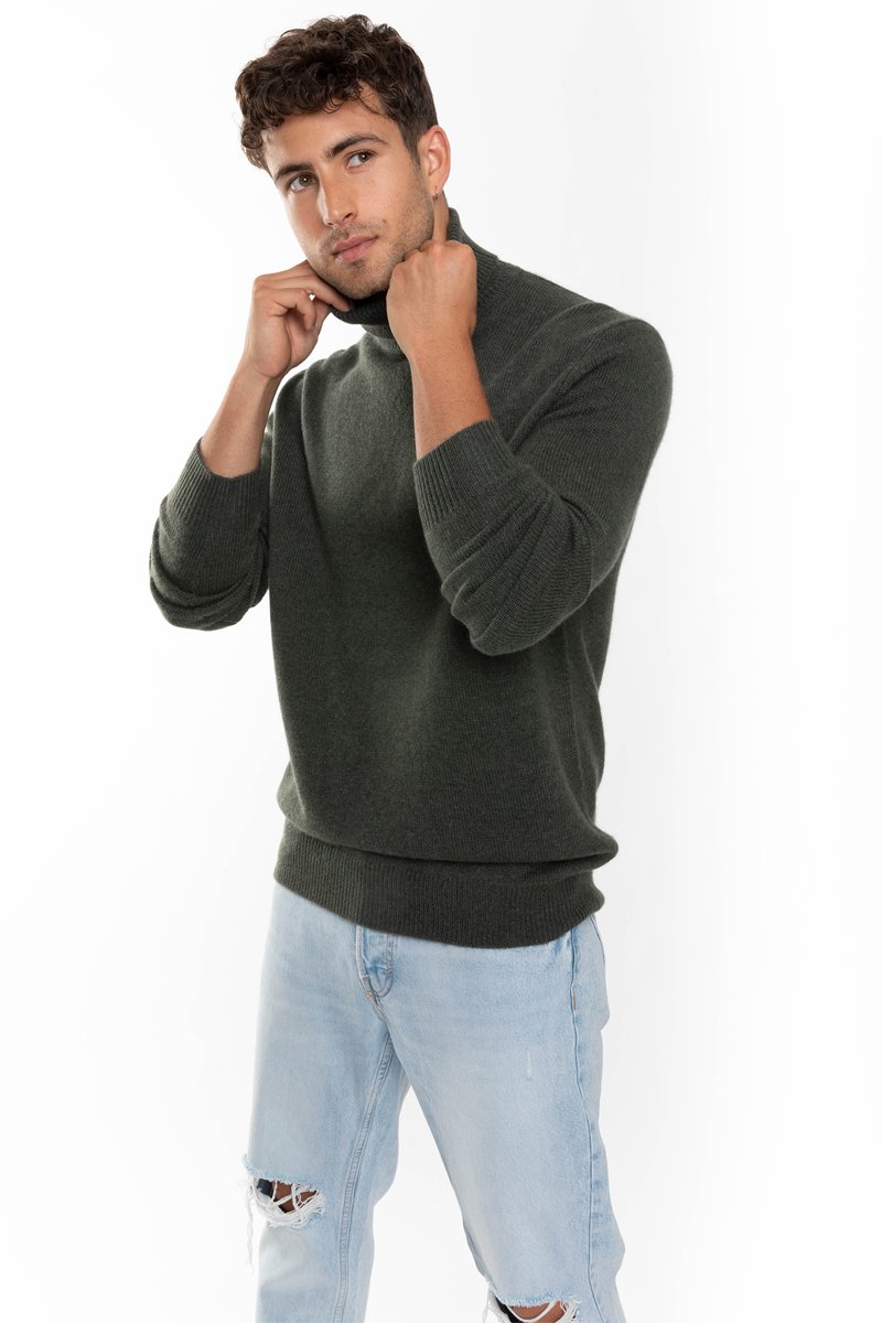 Pull Martin 100% cachemire, 4 fils - Col montant - Kaki chiné