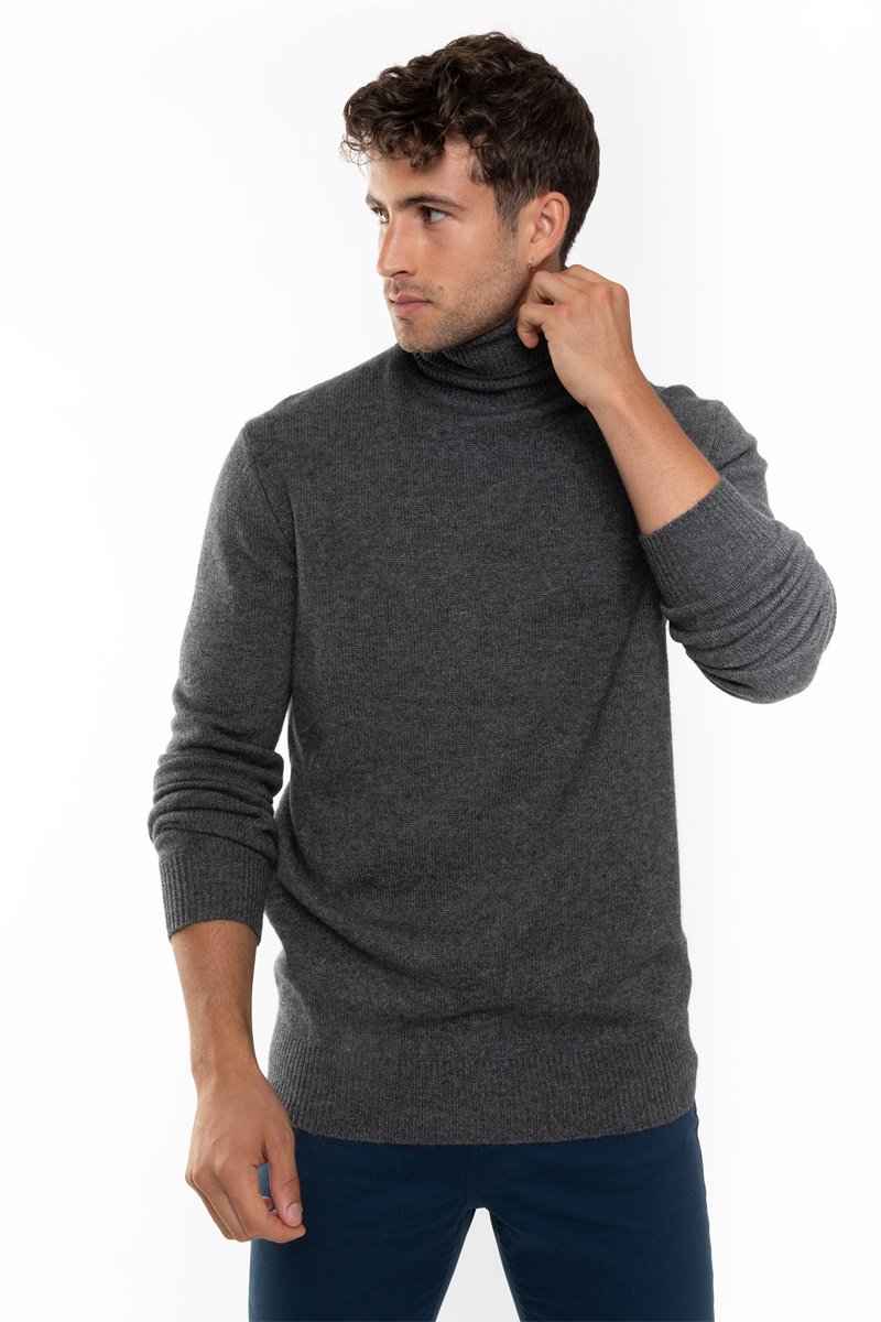 Pull Martin 100% cachemire, 4 fils - Col montant - Anthracite chiné