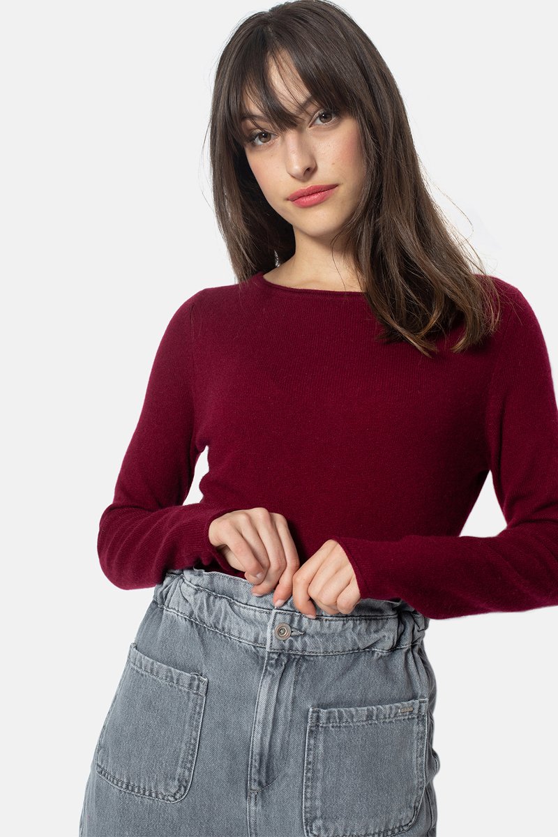 Pull Criou 100% cachemire, 2 fils - Encolure bateau - Bordeaux