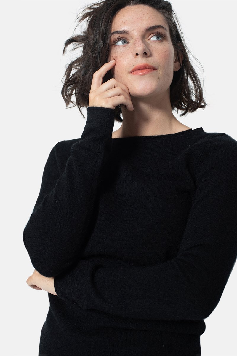 Pull Criou 100% cachemire, 2 fils - Encolure bateau - Noir