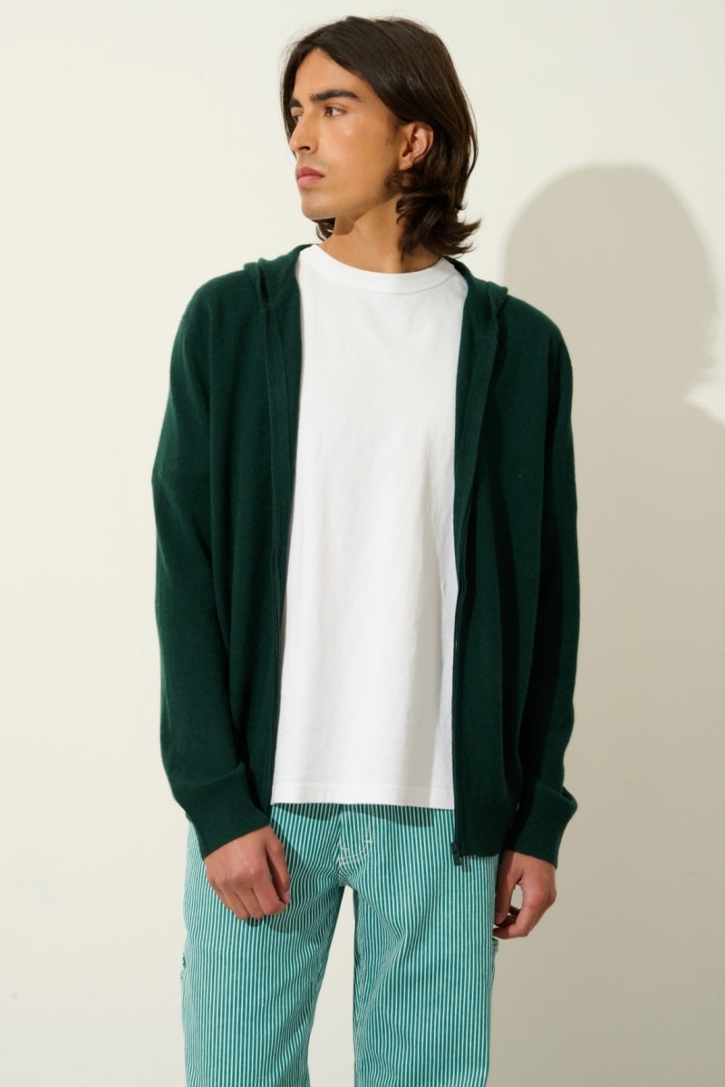 Gilet à capuche Neurre 100% cachemire - Cyprès