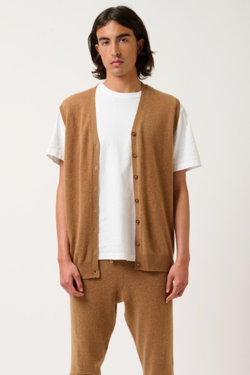 Gilet sans manches Hugo 100% cachemire - Col en V - Noisette