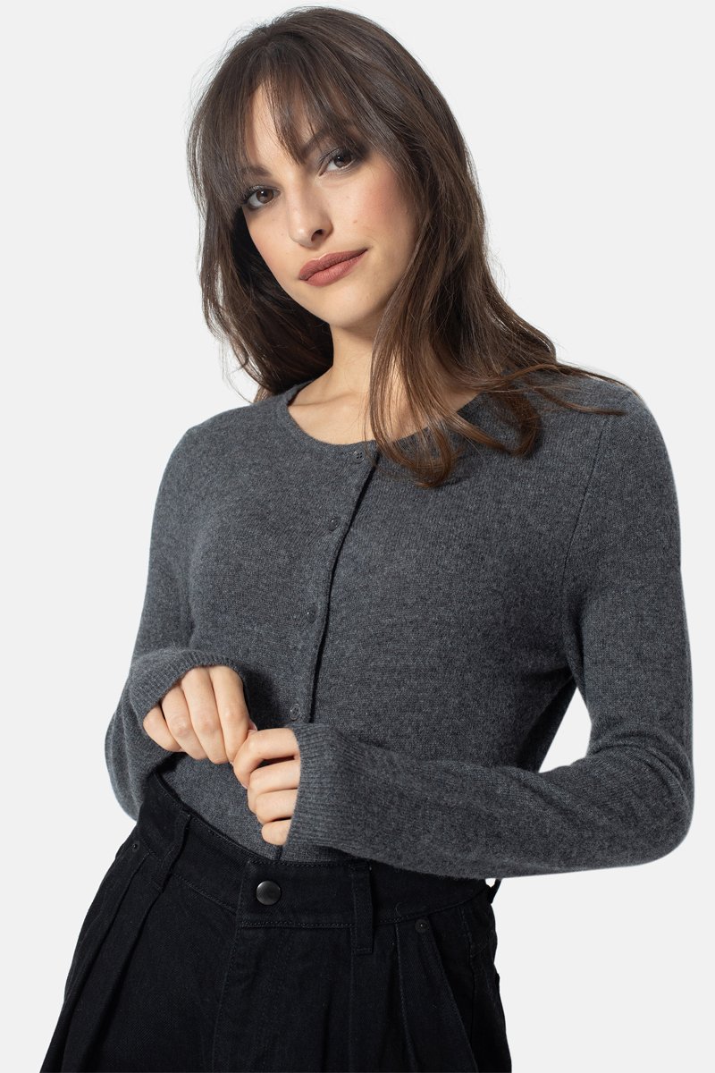 Gilet Caron 100% cachemire, 2 fils - Col rond - Anthracite chiné