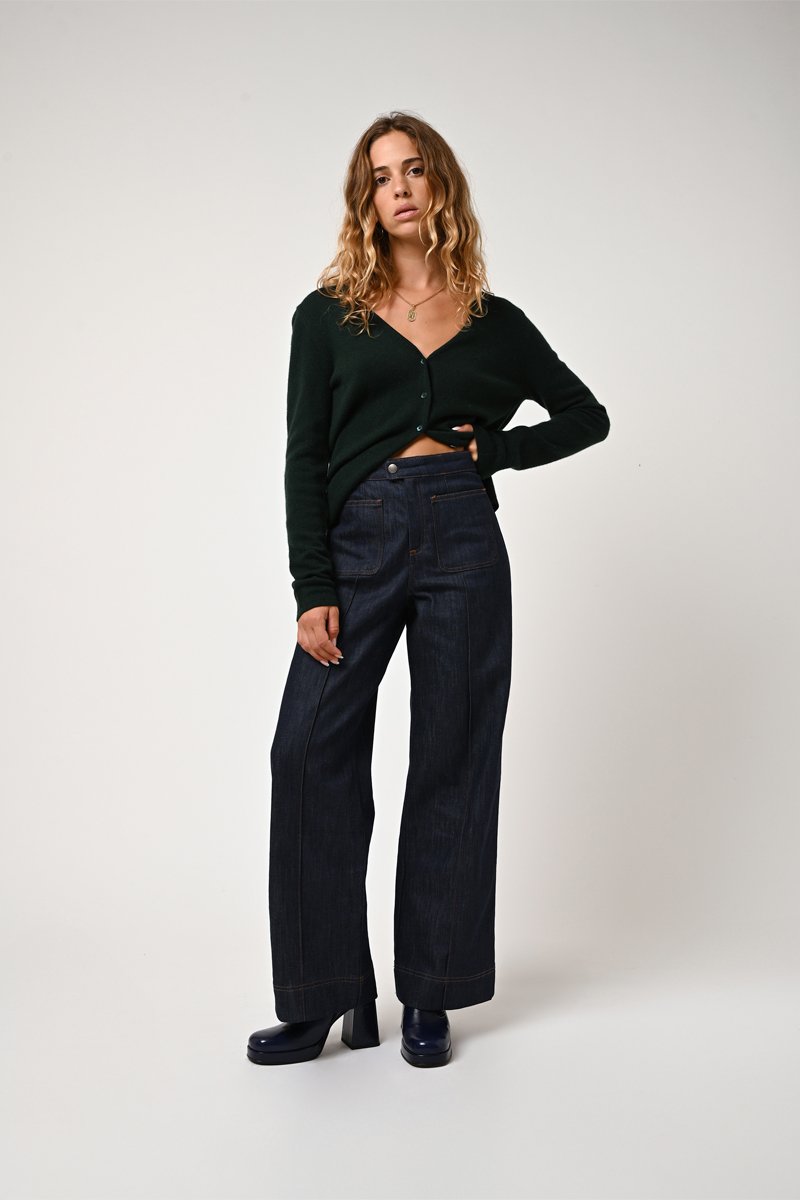 Gilet Chalais 100% cachemire, 2 fils - Col en V - Cyprès