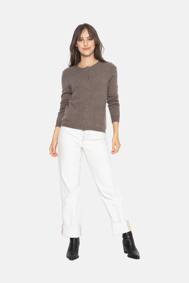 Gilet Caron 100% cachemire, 2 fils - Col rond - Taupe chiné