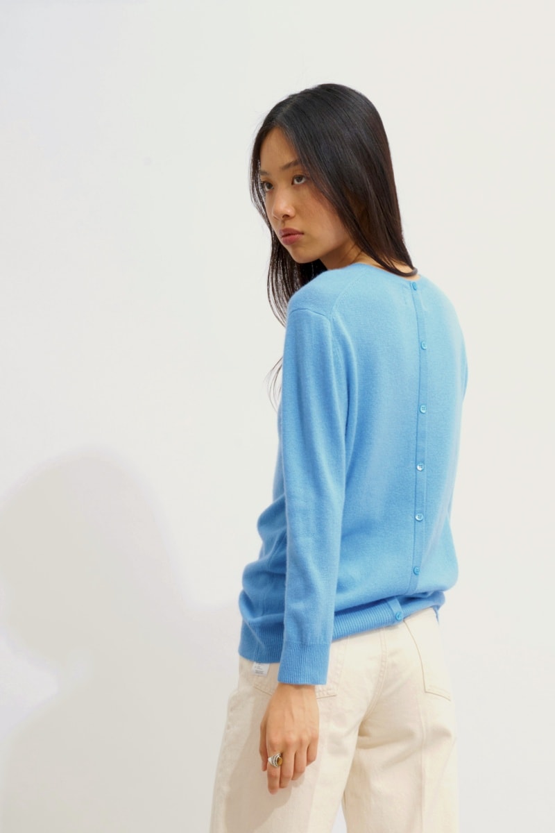 Pull Estaris 100% cachemire, 2 fils - Col rond - Bleu clair