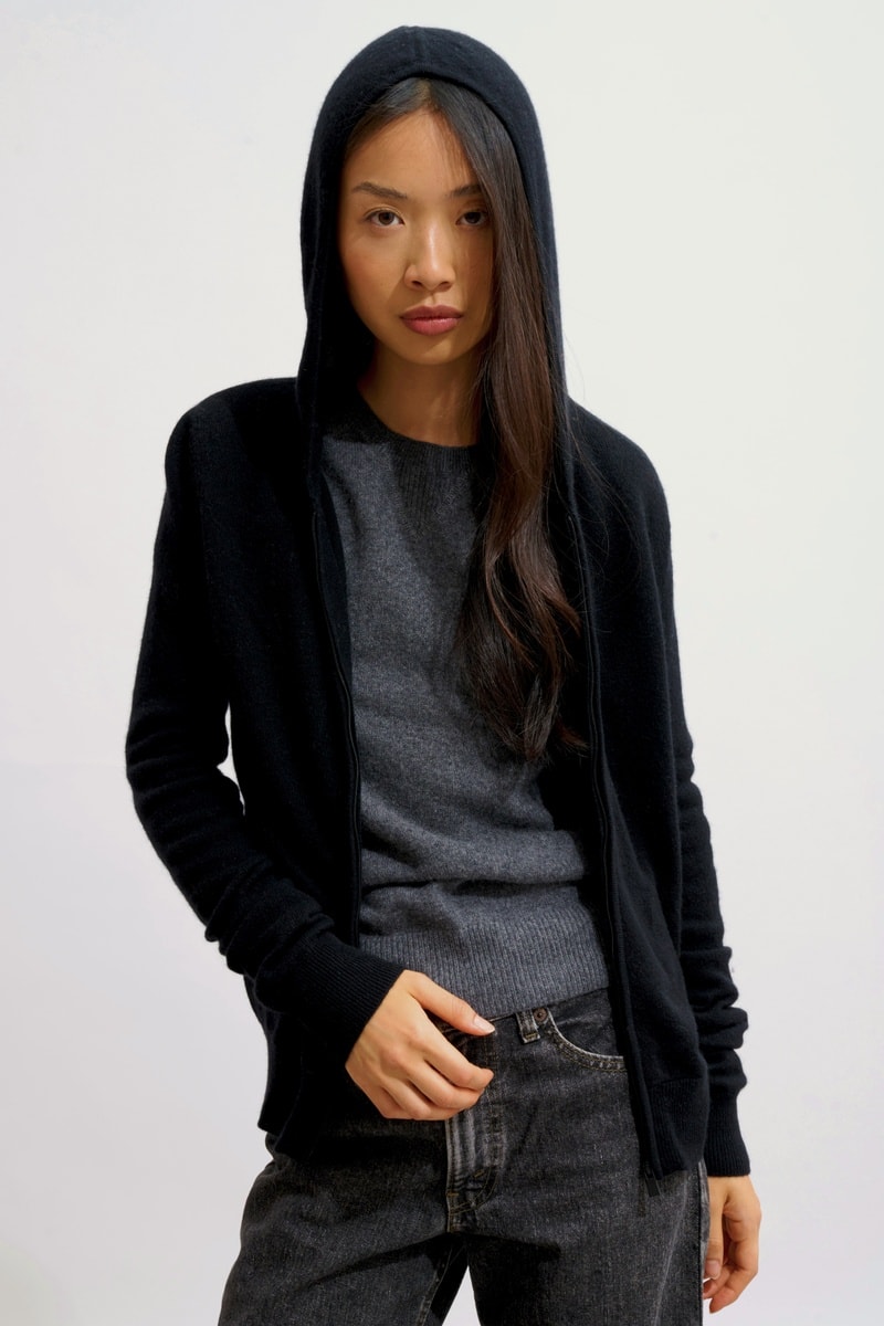 Gilet à capuche Colombis 100% cachemire, 2 fils - Noir