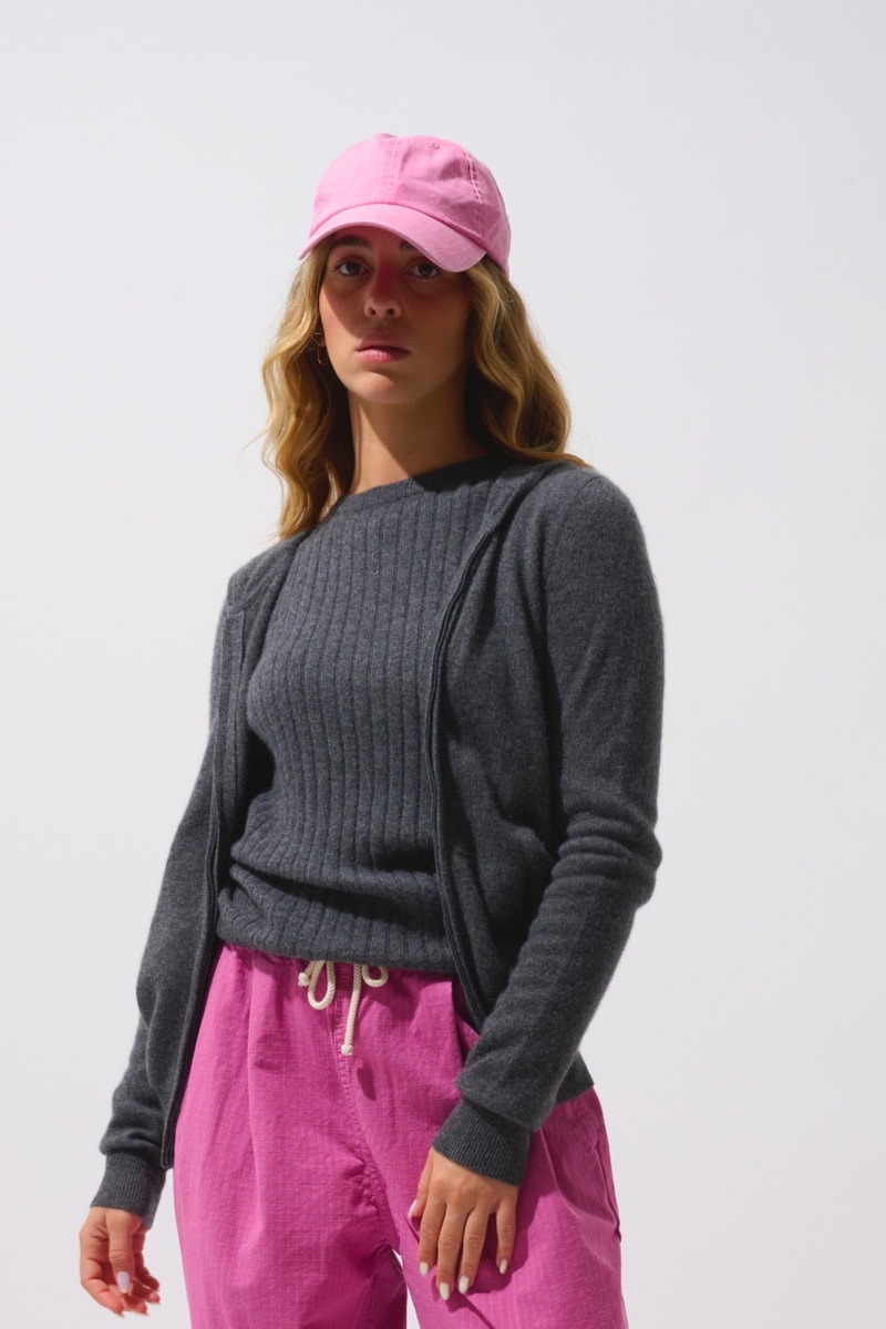 Gilet à capuche Colombis 100% cachemire, 2 fils - Anthracite chiné