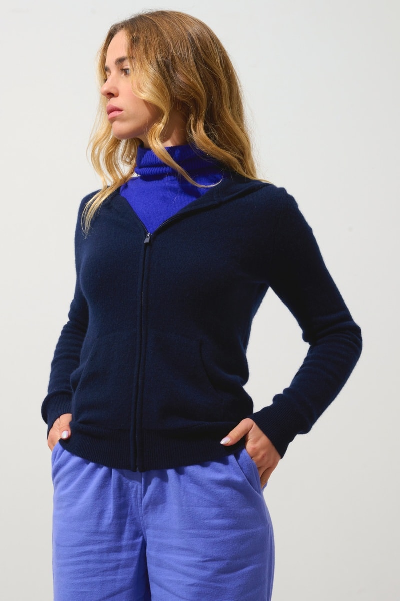 Gilet à capuche Colombis 100% cachemire, 2 fils - Bleu marine
