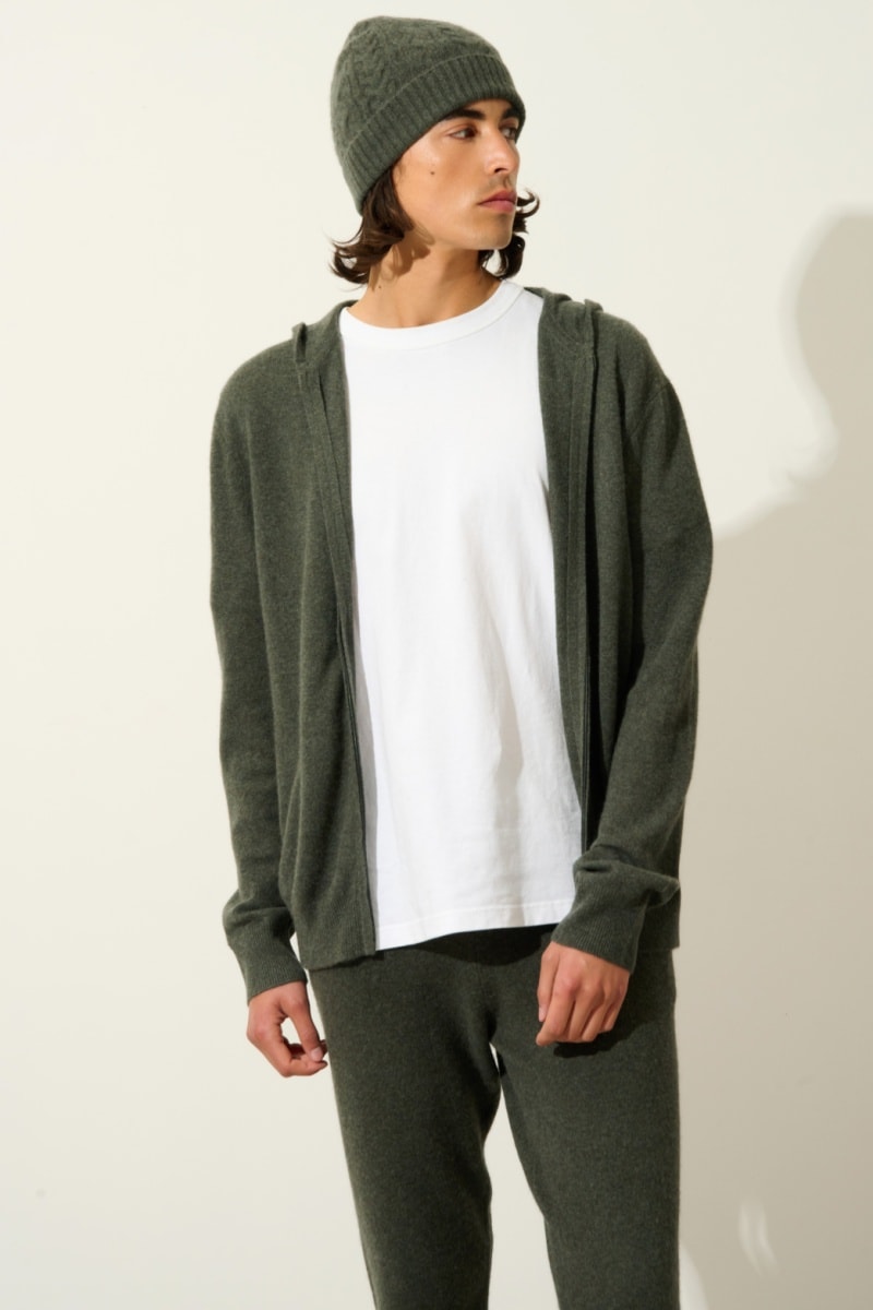 Gilet à capuche Neurre 100% cachemire, 2 fils - Kaki chiné