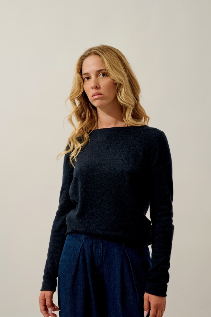 Pull Criou 100% cachemire, 2 fils - Col bateau - Bleu foncé
