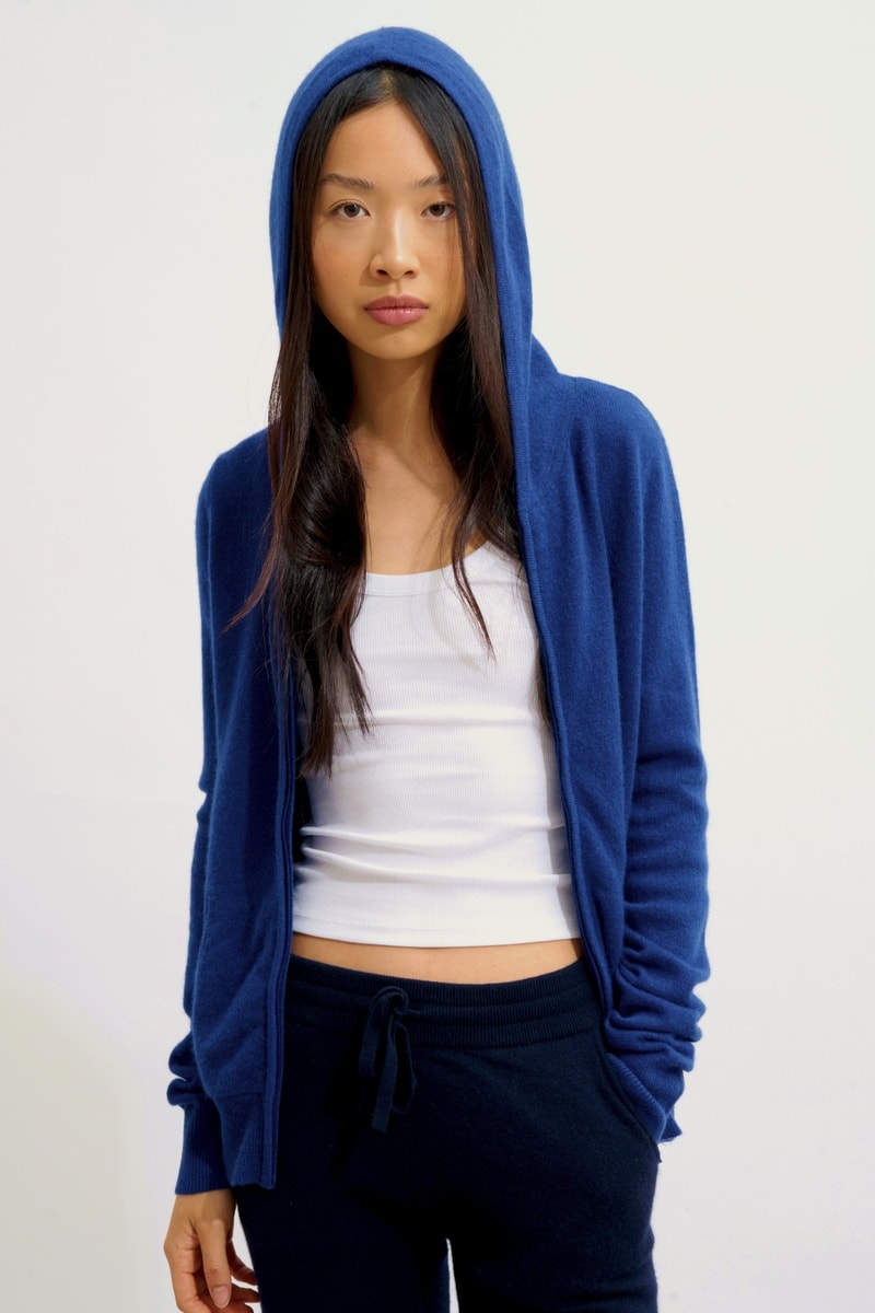 Gilet à capuche Colombis 100% cachemire, 2 fils - Bleu marine