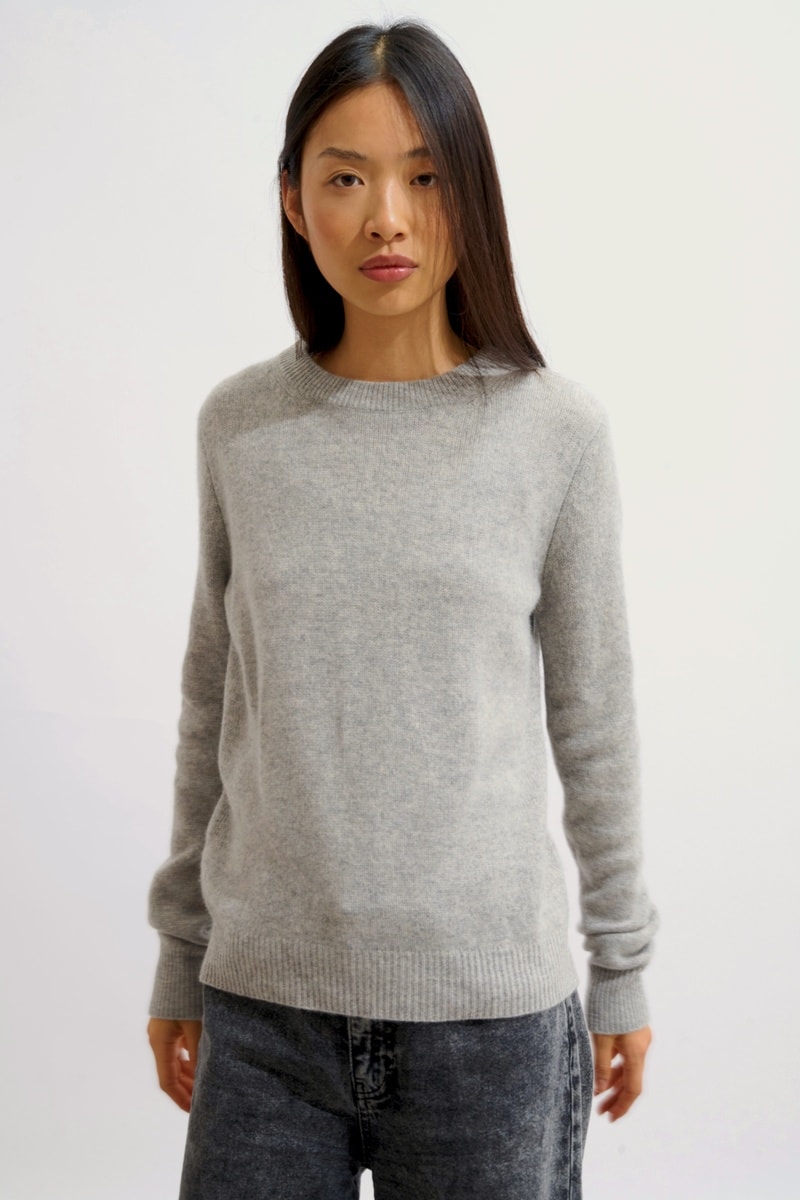 Pull Lexini 100% cachemire, 4 fils - Col rond - Gris clair chiné