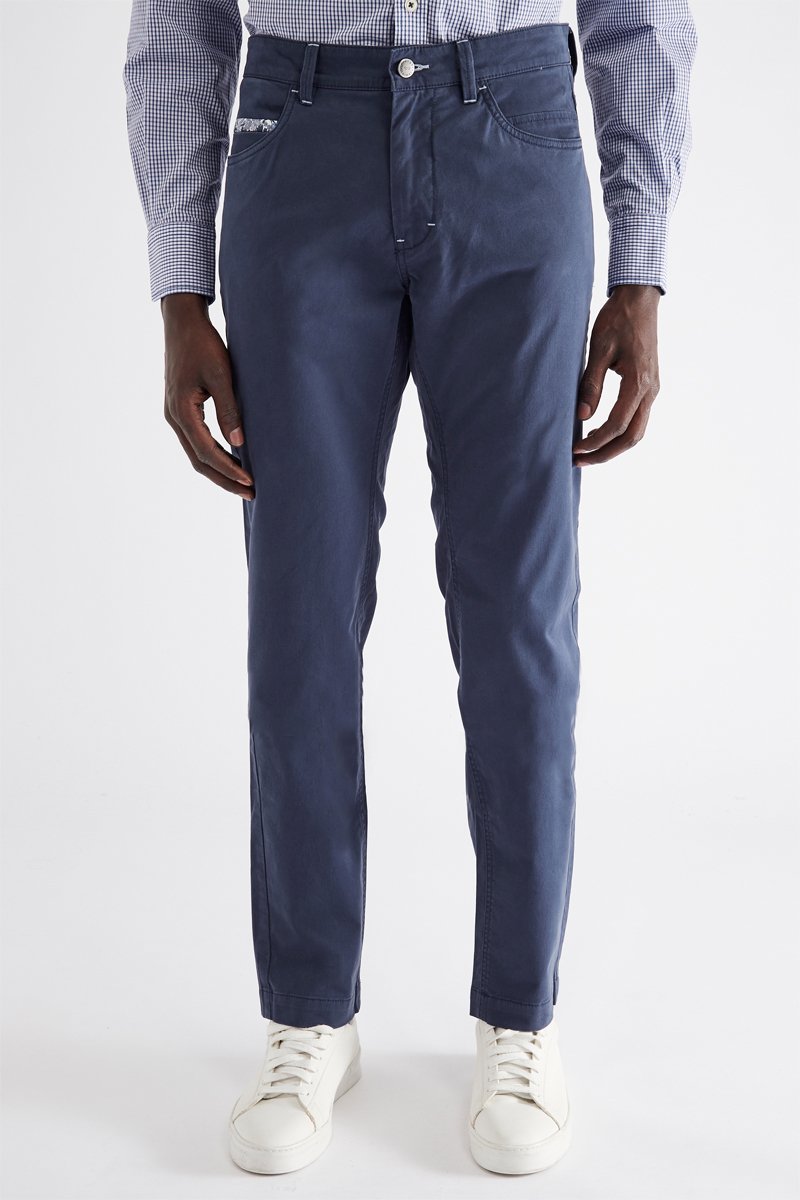 5 poches dont 2 avec empiècements à motifs fleurs.