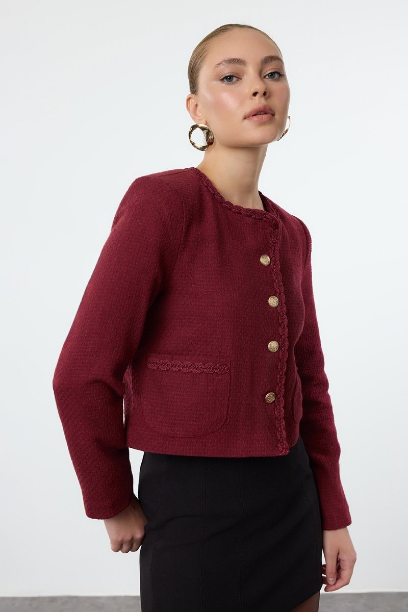 Galons à l'encolure et devant. Fermeture boutonnée.
