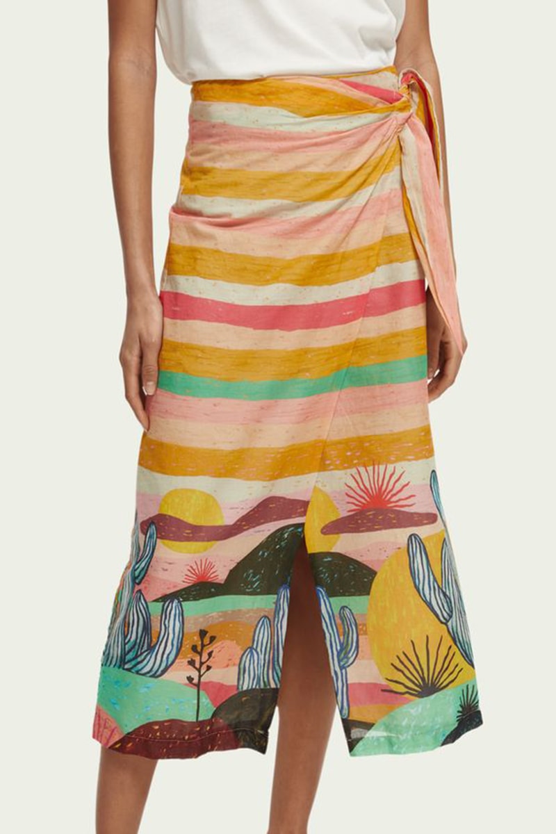 Jupe portefeuille en coton biologique x Abel Macias - Moutarde et rose
