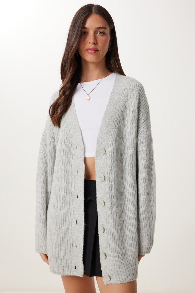 Gilet long regular à manches longues à épaules tombantes.
