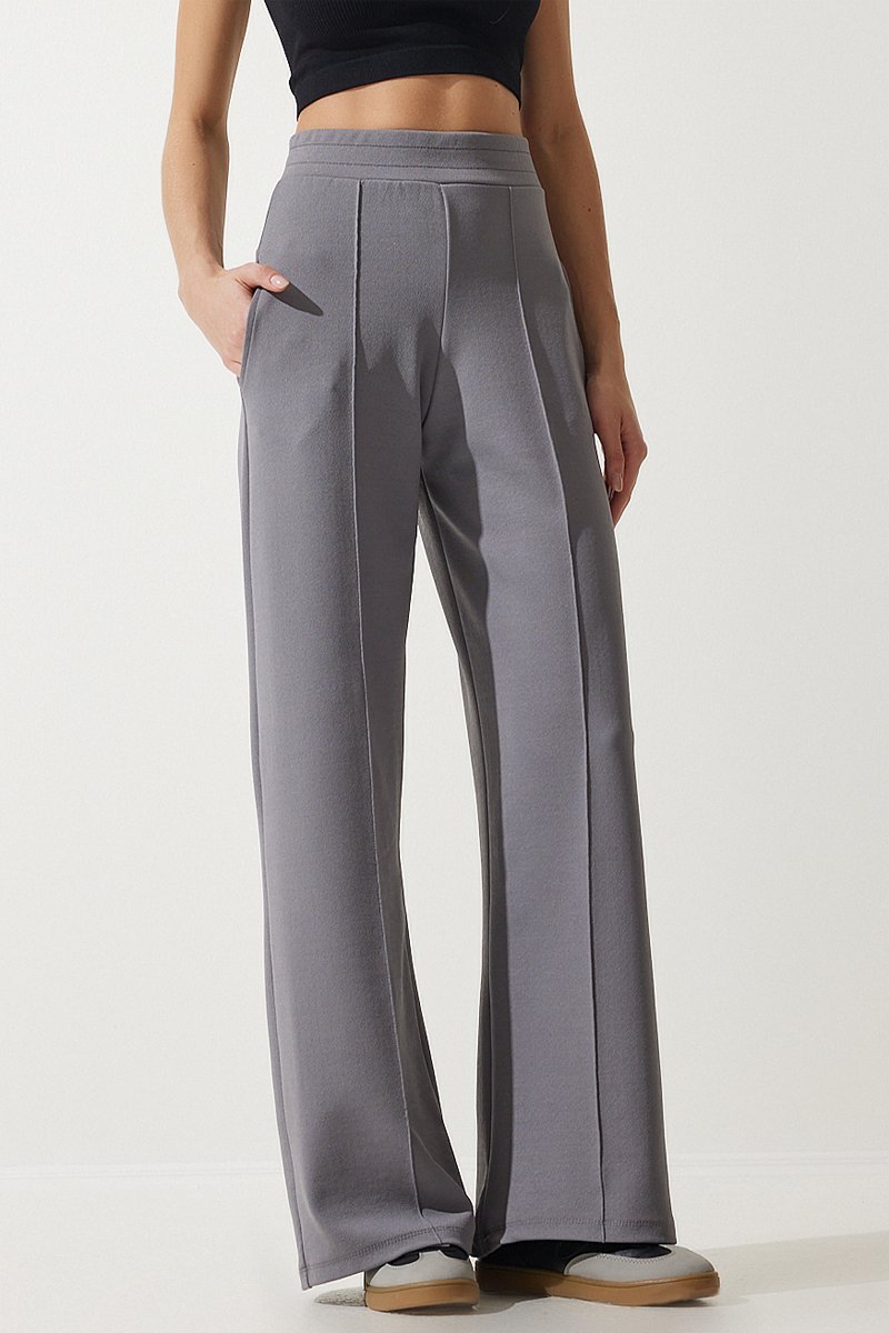 Pantalon palazzo taille haute - Gris