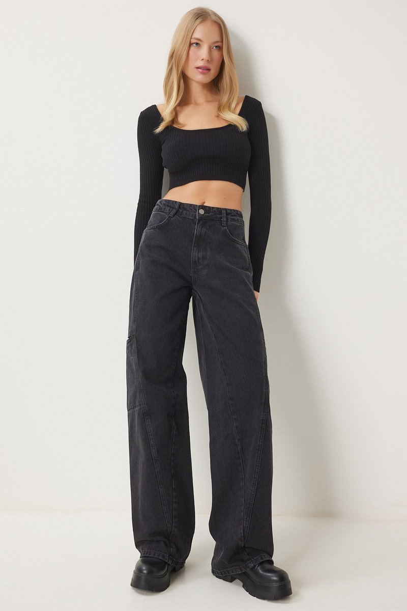 Jean cargo taille haute - Noir