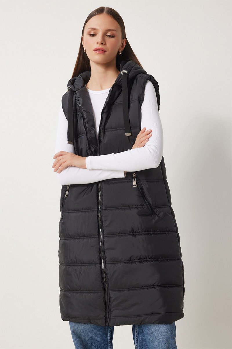 Doudoune longue sans manches - Noir