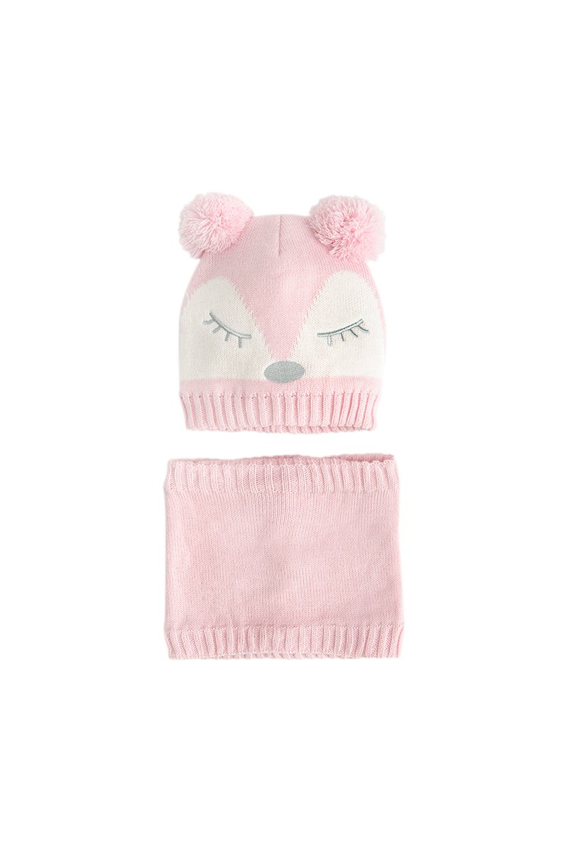 Bonnet à oreilles et snood - Rose