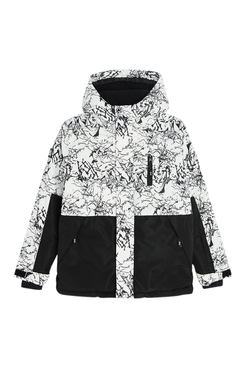 Motifs fantaisie sur la capuche, les manches, devant et au dos.