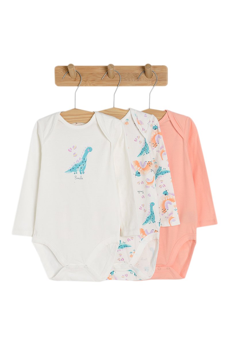 3 bodys dont 1 avec lettrage et motifs fantaisie devant et 1 avec lettrage et motifs fantaisie.