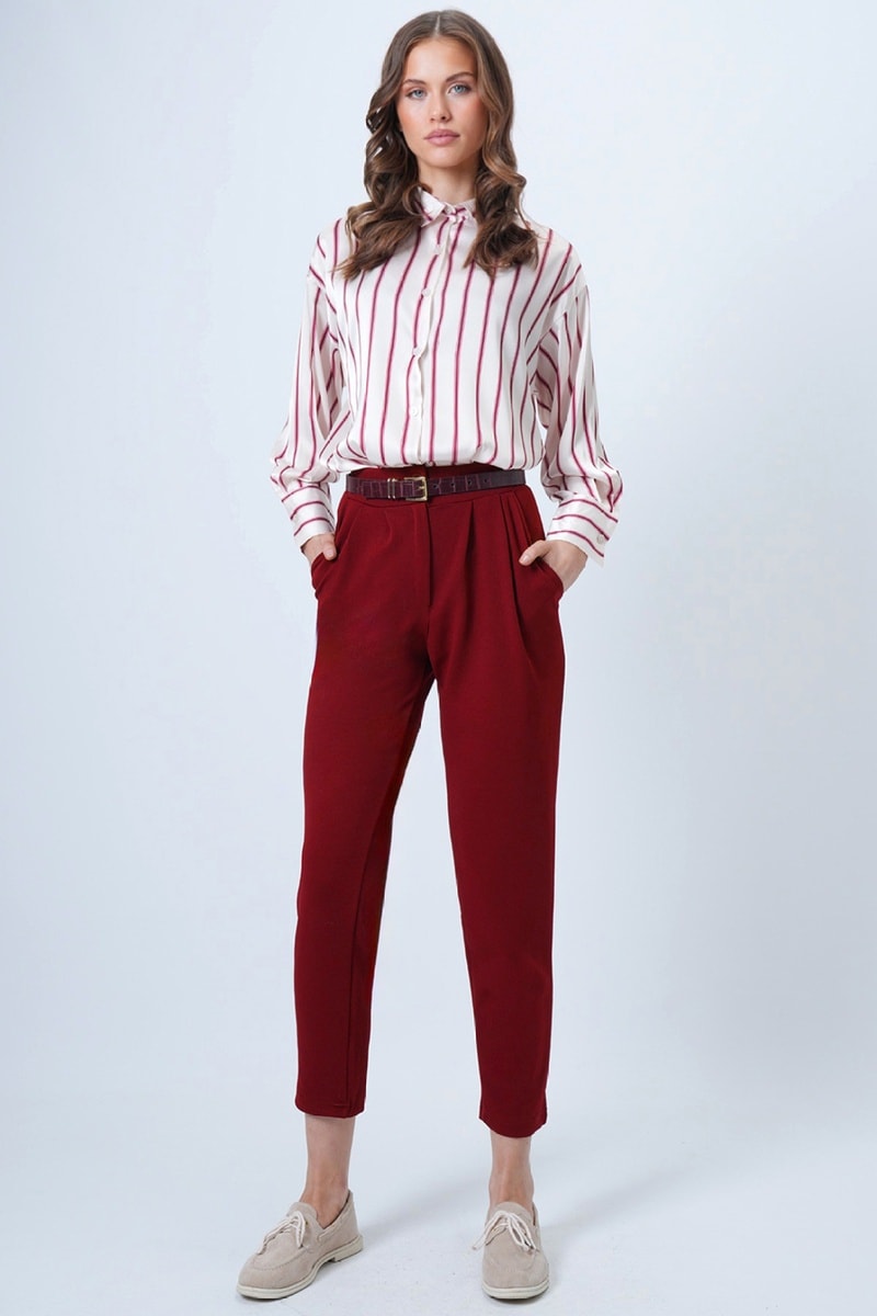 Pantalon regular taille haute - Rouge