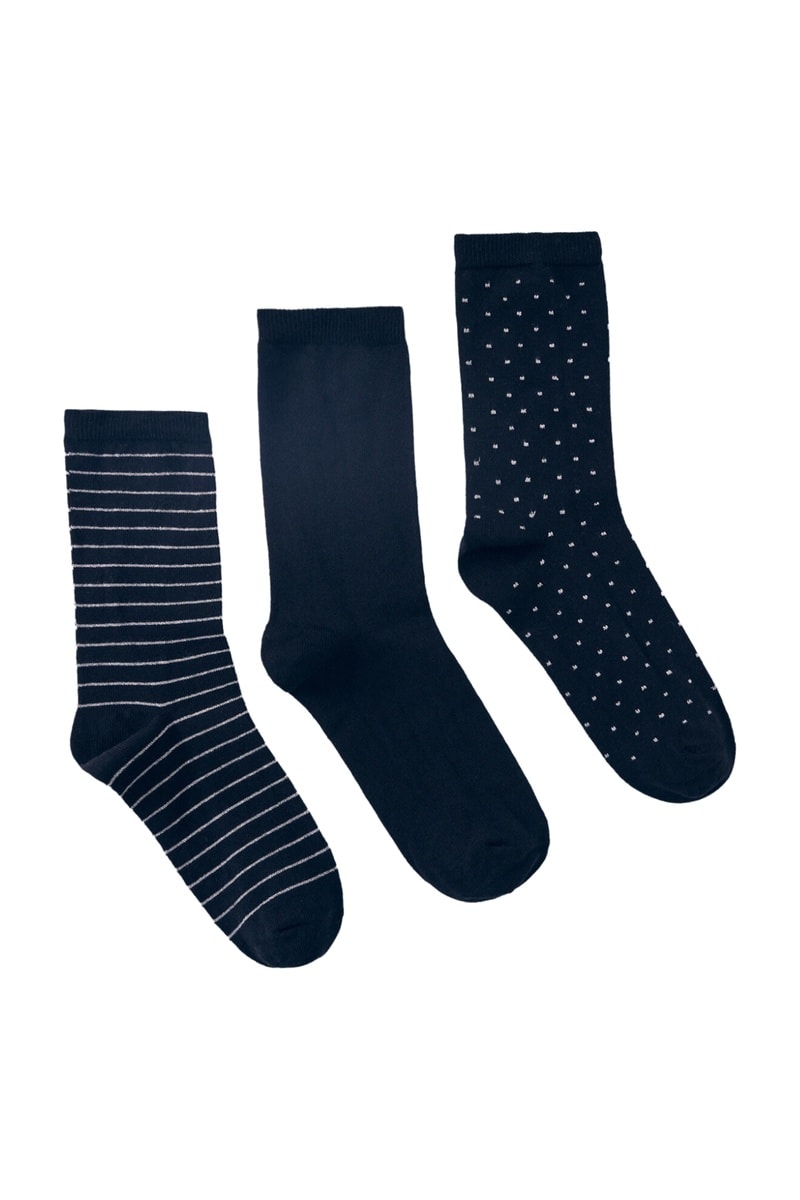 3 paires de chaussettes dont 1 à motifs à rayures pailletés et 1 à motifs à pois pailletés.
