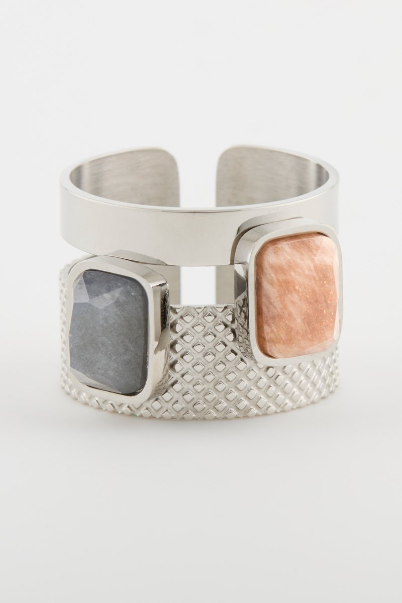 Bague - Pierre de soleil et labradorite