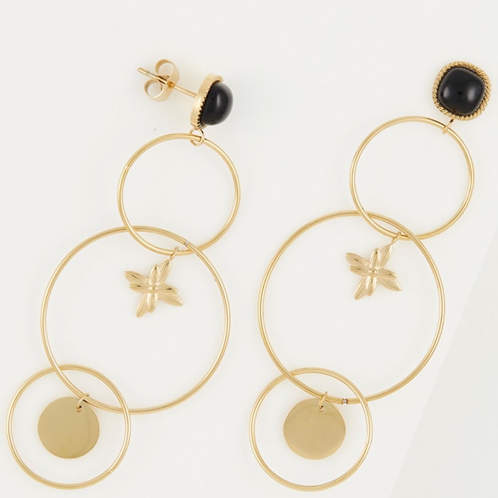 Boucles d'oreilles - Acier inoxydable doré & onyx noir