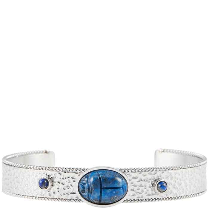 Jonc - Acier inoxydable argenté & lapis-lazuli bleue