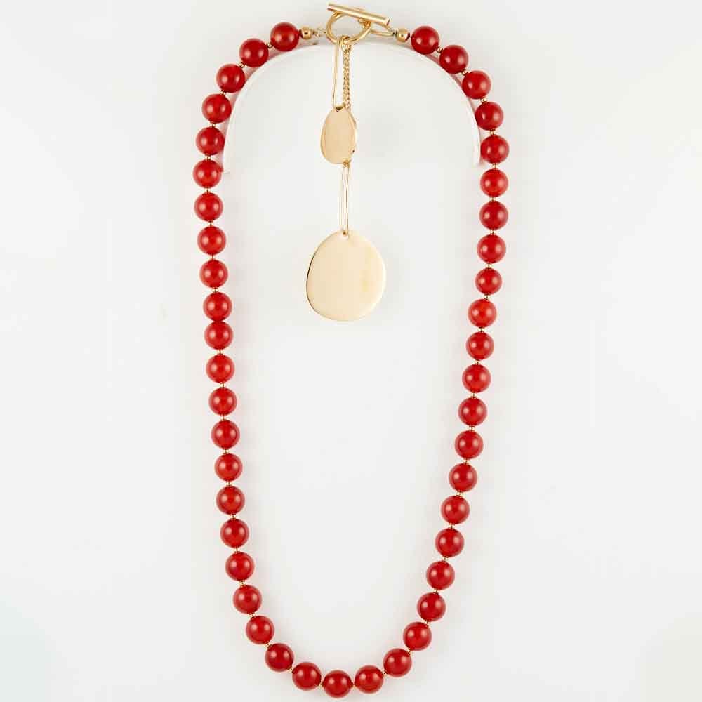 Collier - Acier inoxydable doré & cornaline rouge