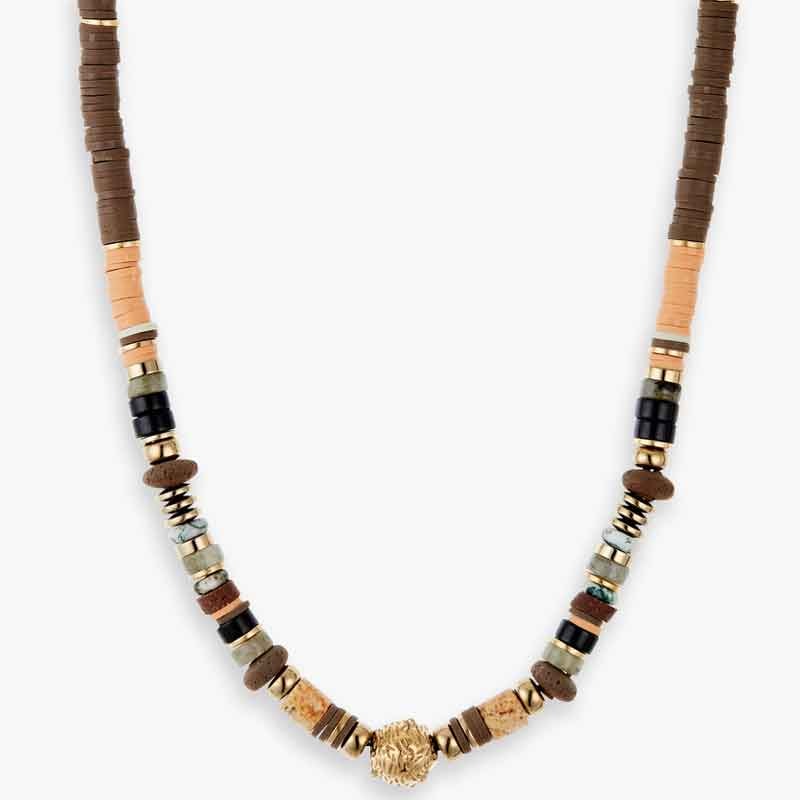 Collier - Acier inoxydable doré & marron