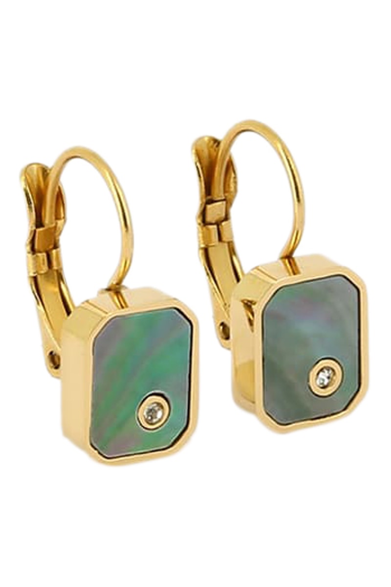 Boucles d’oreilles sertie de nacre et d’un cristaux.