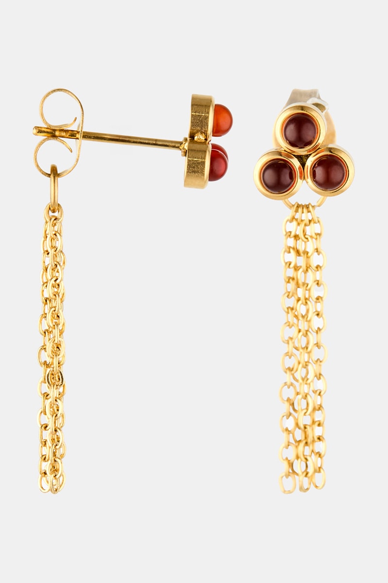 Boucles d’oreilles pendantes serties de 3 cornalines.