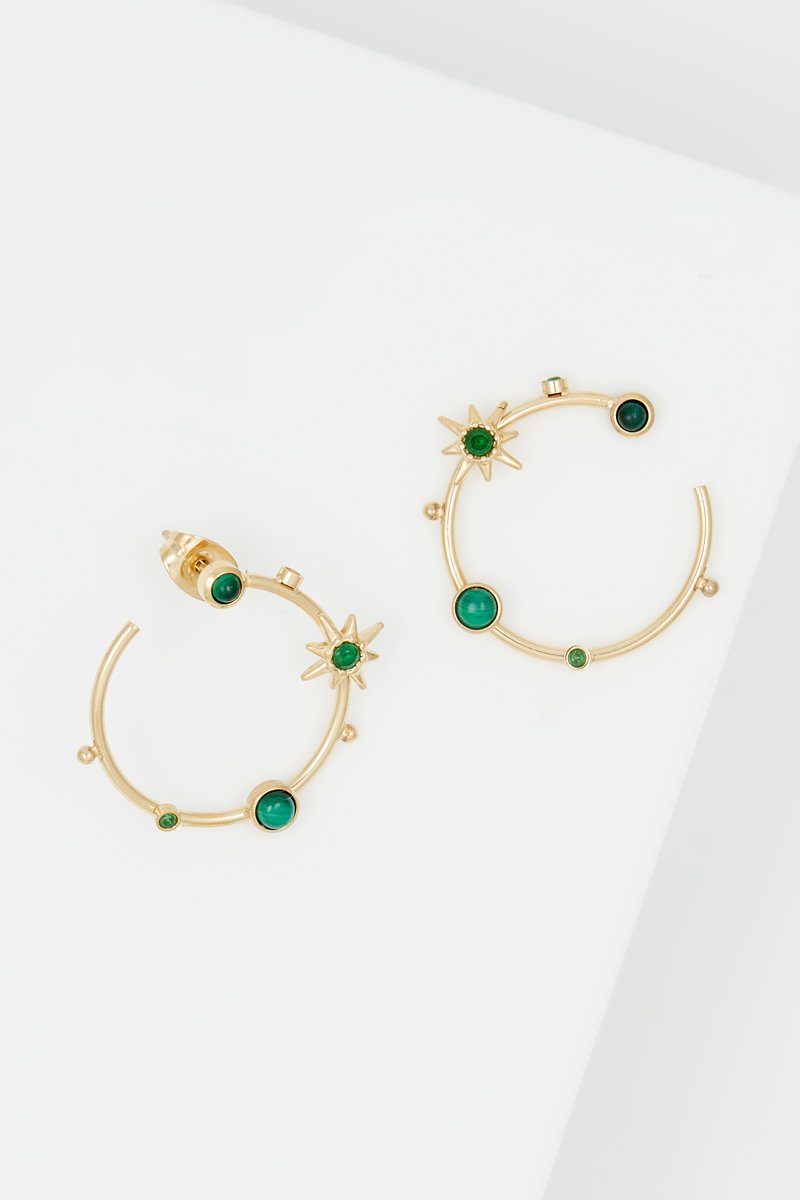 Boucles d'oreilles serties de malachites.