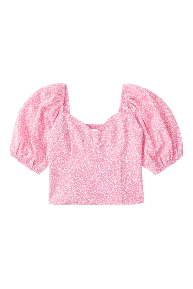 Crop top à manches coutes bouffantes élastiques.