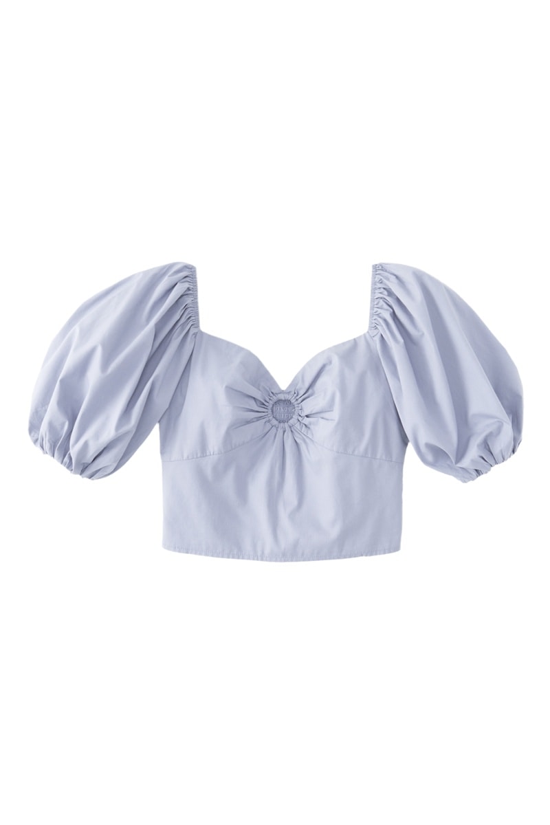 Crop top à manches courtes bouffantes élastiques.
