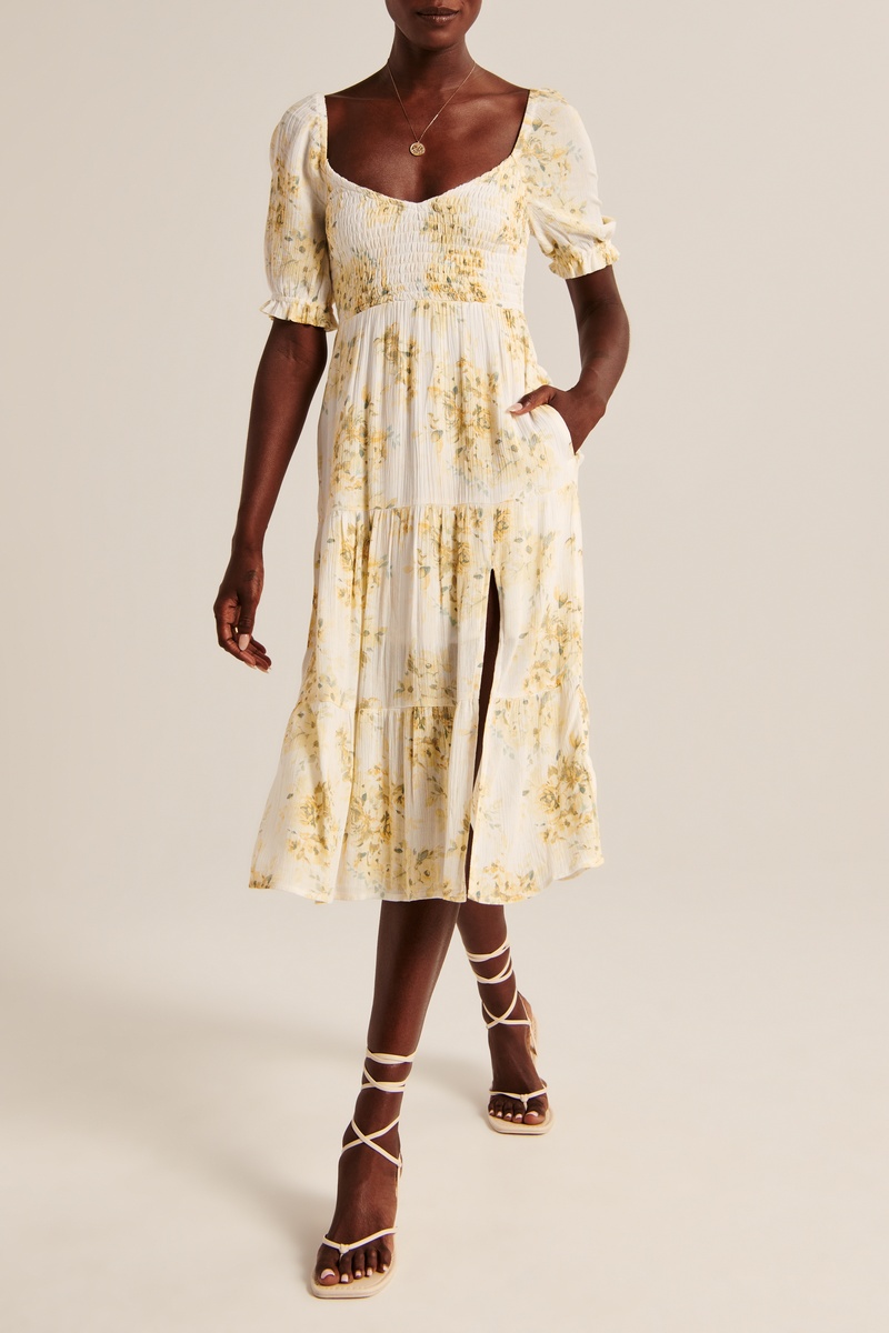 Robe midi - Blanc et jaune