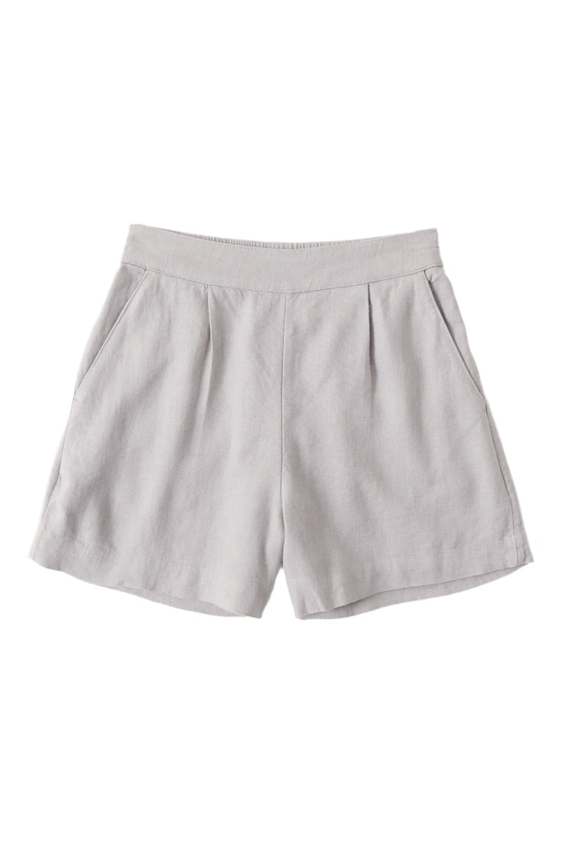 Short en lin taille haute - Gris clair