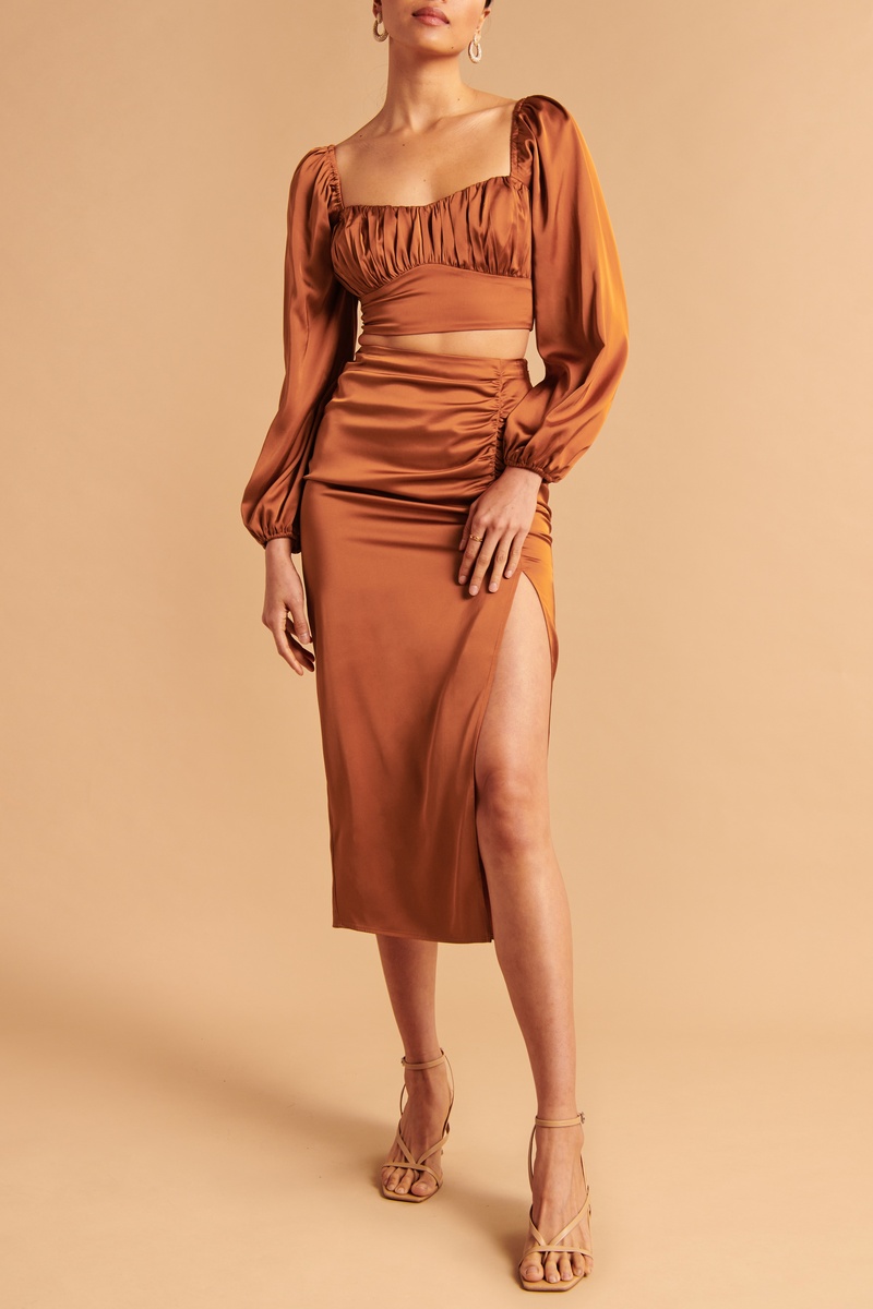 Jupe fourreau satiné.