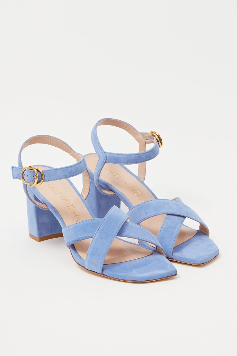 Sandales à talons en cuir de chèvre Analeigh 75 - Bleu - Stuart Weitzman