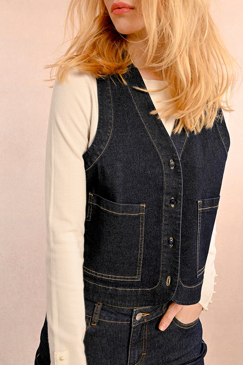 Gilet en jean sans manches - Bleu foncé - Molly Bracken